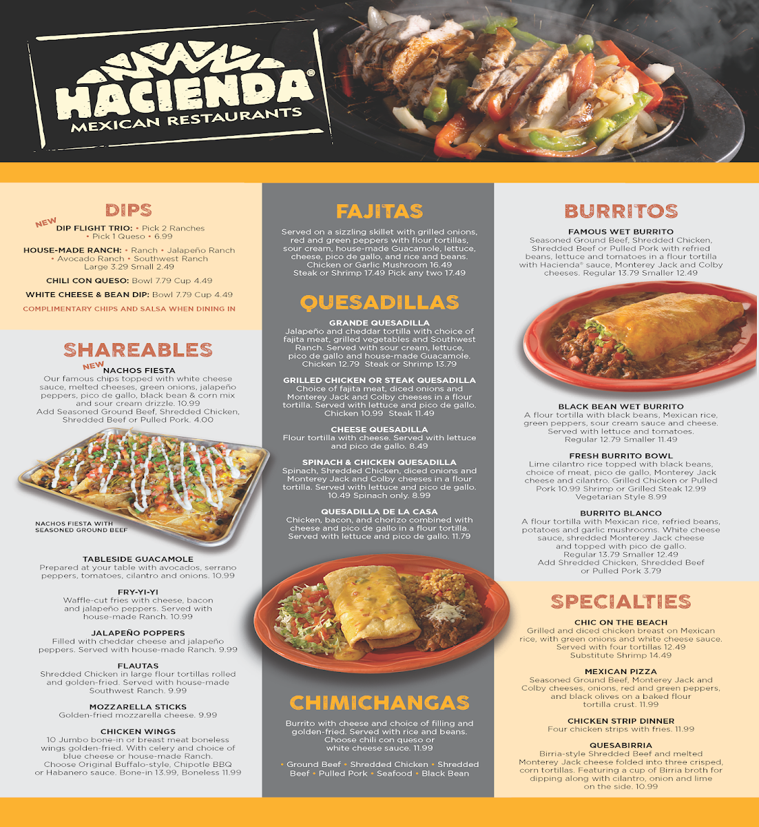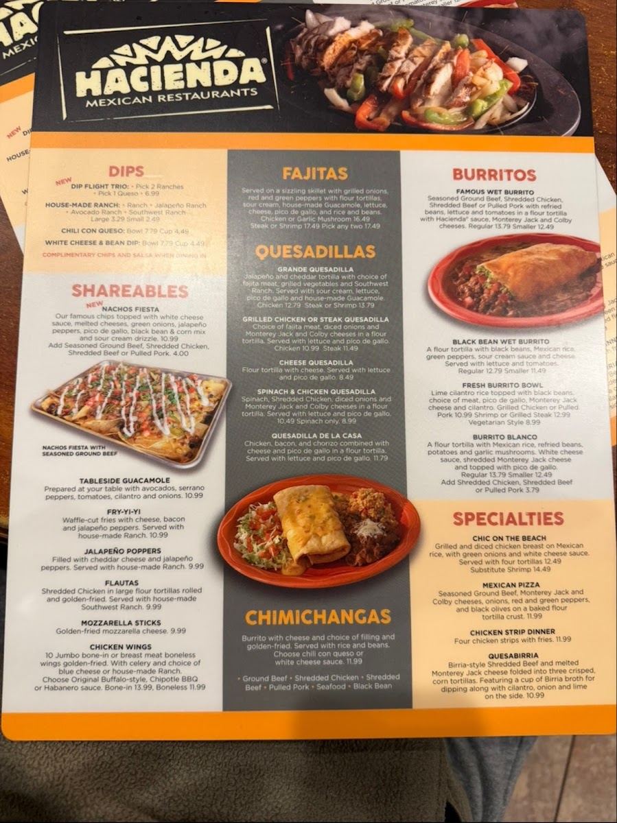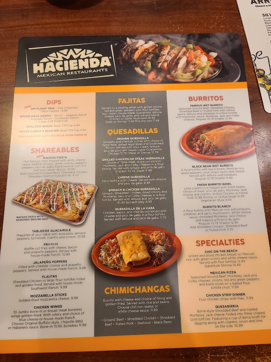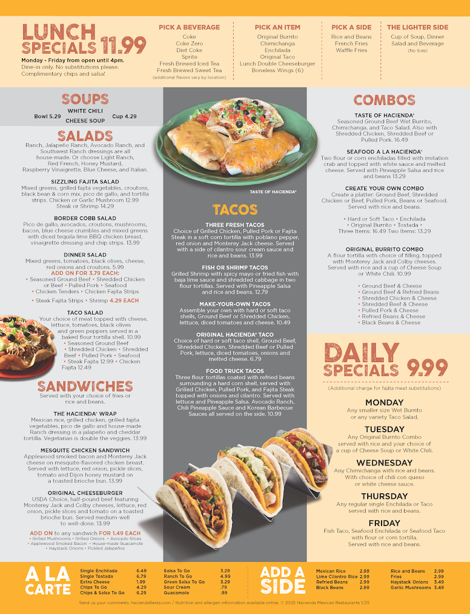 Hacienda Mexican Restaurants Menu